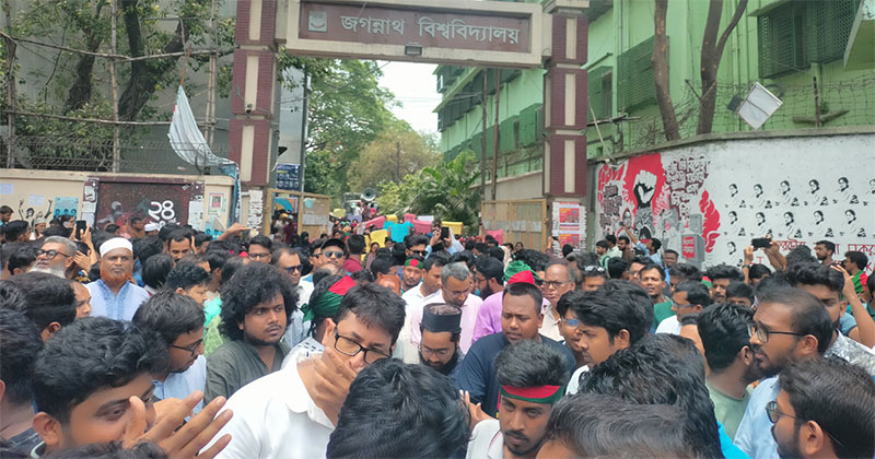 এরপর ‘জবি ঐক্য’ নামে জগন্নাথ বিশ্ববিদ্যালয়ের শিক্ষার্থীদের প্ল্যাটফর্ম থেকে তিন দাবিতে প্রধান উপদেষ্টার বাসভবন যমুনা অভিমুখে লং মার্চের ঘোষণা দেওয়া হয়।