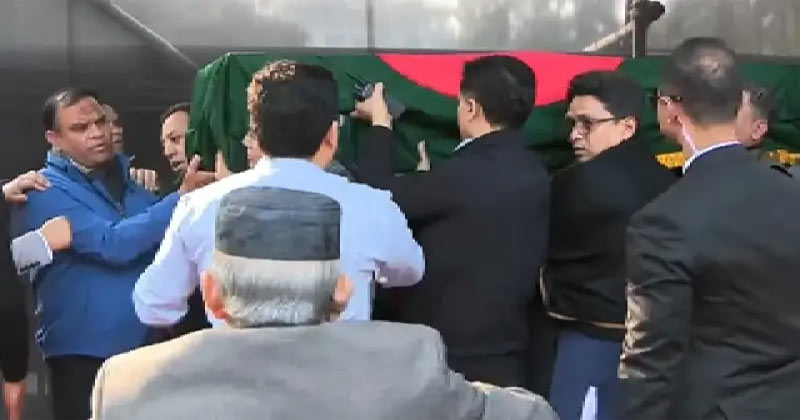 এর আগে দুপুর ২টা ৫ মিনিটে জানাজাস্থলে পৌঁছান প্রধান উপদেষ্টা ড. মুহাম্মদ ইউনূস। সেখানে উপদেষ্টা পরিষদের সদস্য, তিন বাহিনীর প্রধান এবং বিএনপিসহ রাজনৈতিক দলের শীর্ষ নেতারা উপস্থিত হয়েছেন।
